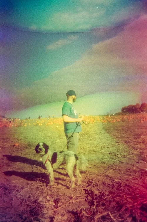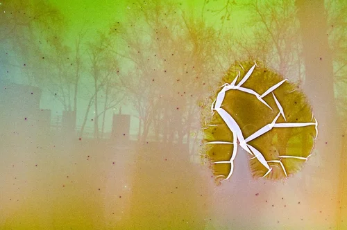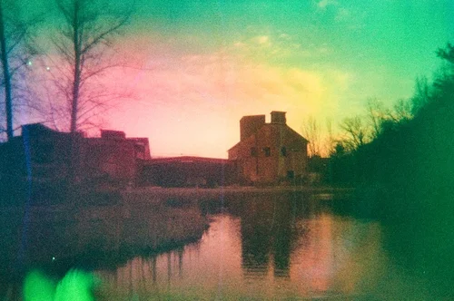These photos were taken on a 35mm disposable camera over late summer and early fall 2024. The photos were taken in Easton, CT at the infamously haunted Union Cemetery, photos were also taken in Buffalo, NY and Tkaronto (Toronto, ON). The whole camera was placed in a film soup before freezing and thawing. The photos were not edited post-developing